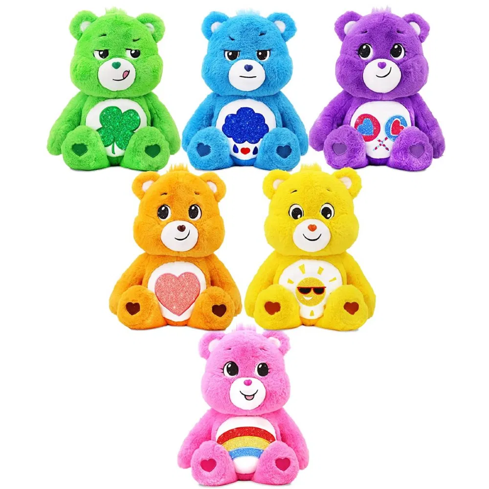 Los Care Bears son un grupo de Ositos mejores amigos que se pueden abrazar y viven esa dulce vida cariñosa y qué mejor manera de que te unas a la diversión que con el nuevo peluche Care Bears Plush. Cada osito cariñoso es perfecto para abrazos ilimitados de osos y listo para que emprendas tus aventuras de compartir y cuidar. Diseño con glitter.