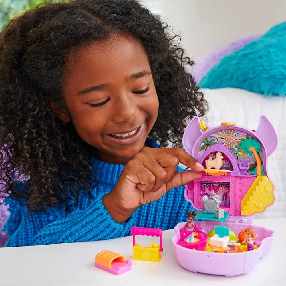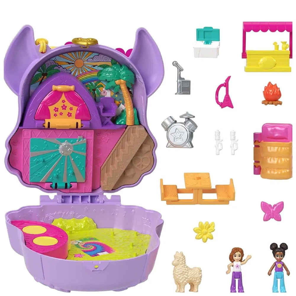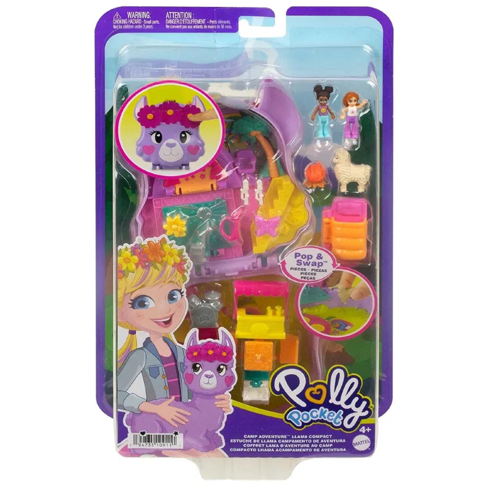 ¡Este juego de Polly Pocket Camp Adventure Llama Compact presenta una adorable cabeza de llama con una corona de flores decorada con tela divertida al tacto! El juguete portátil se abre para revelar un juego con 2 micromuñecas, 5 funciones móviles y 13 accesorios que incluyen una llama, una hielera que se abre y se cierra, un saco de dormir que puede contener una muñeca adentro y más.