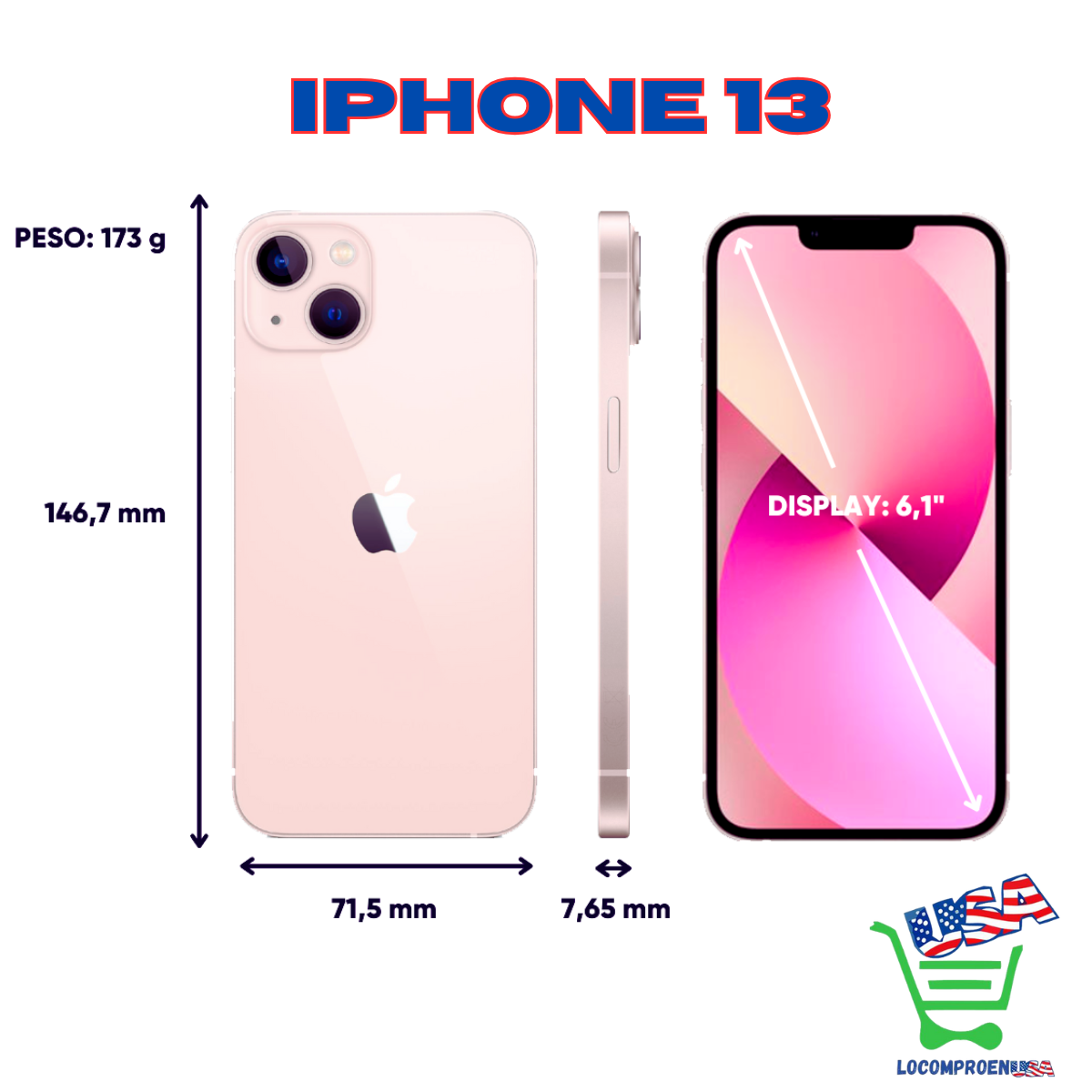 El iPhone 13 cuenta con una pantalla Super Retina XDR OLED de 6.1 pulgadas, un chip A15 Bionic, y un sistema de doble cámara de 12MP.