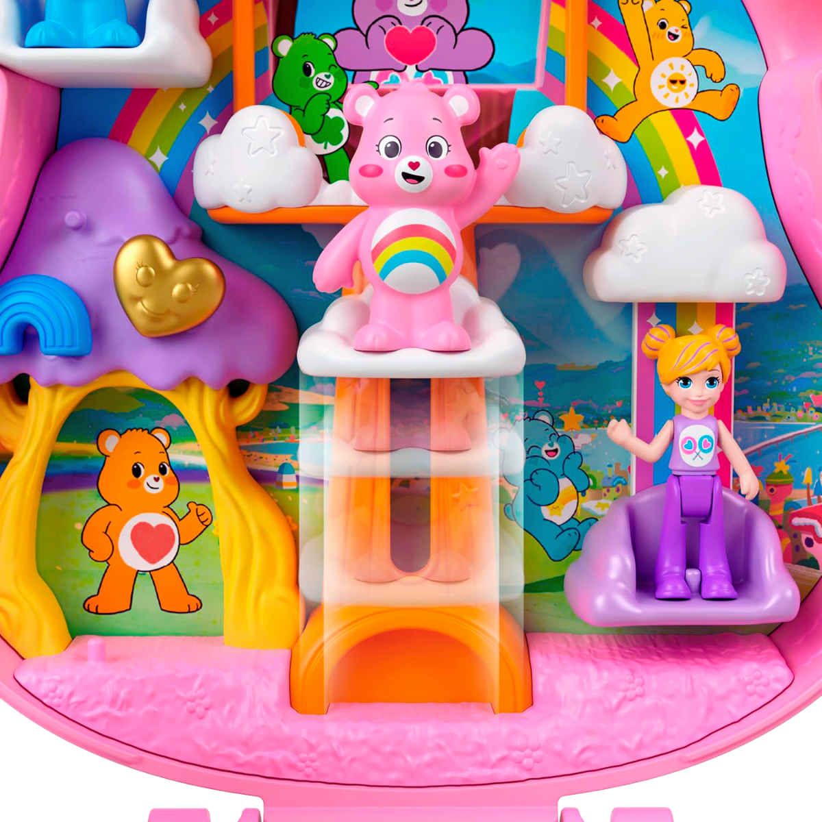 Las muñecas Polly y care Bears pueden ir de picnic al parque o turnarse para subir al ascensor de la casa del árbol y jugar junto a la muñeca Polly en las nubes.