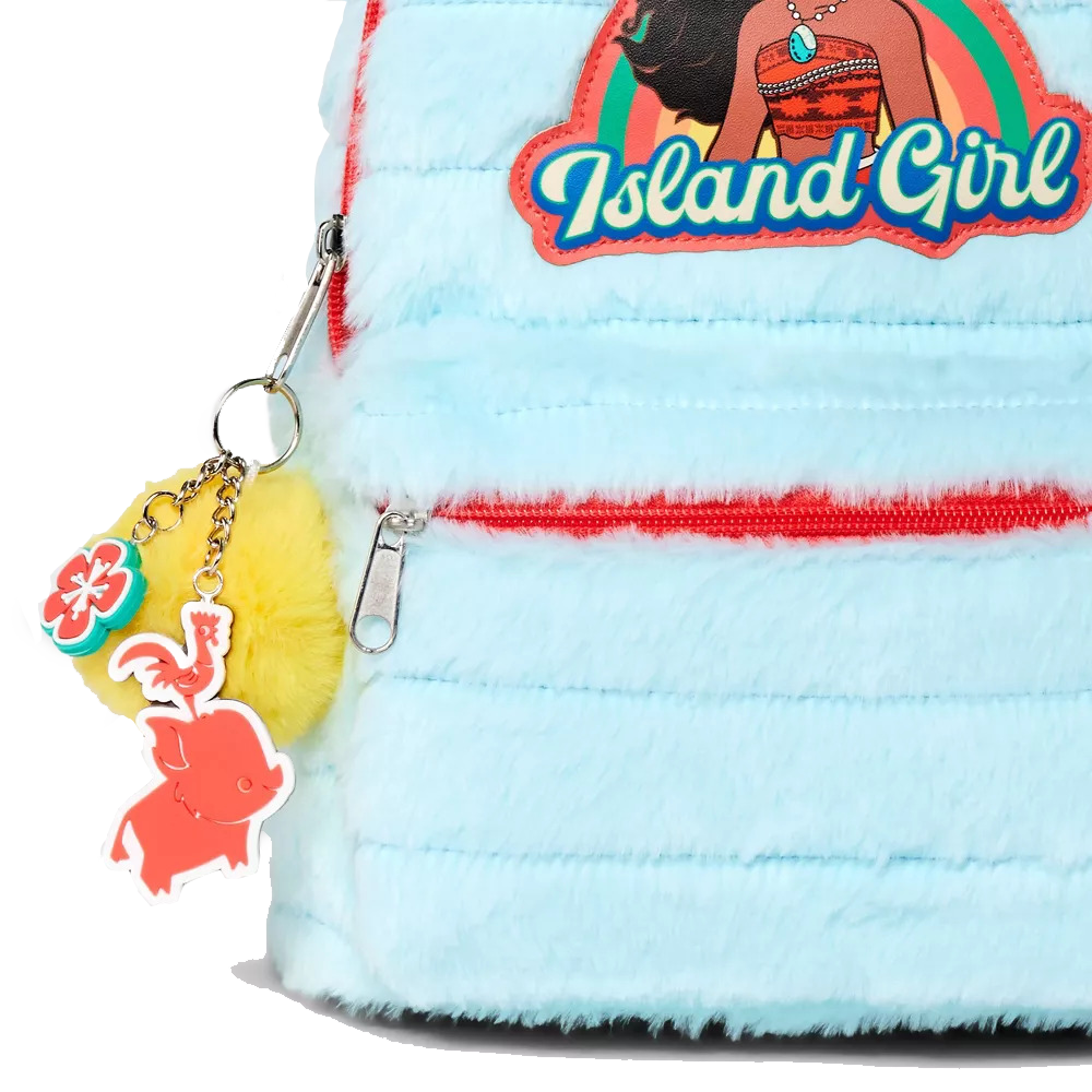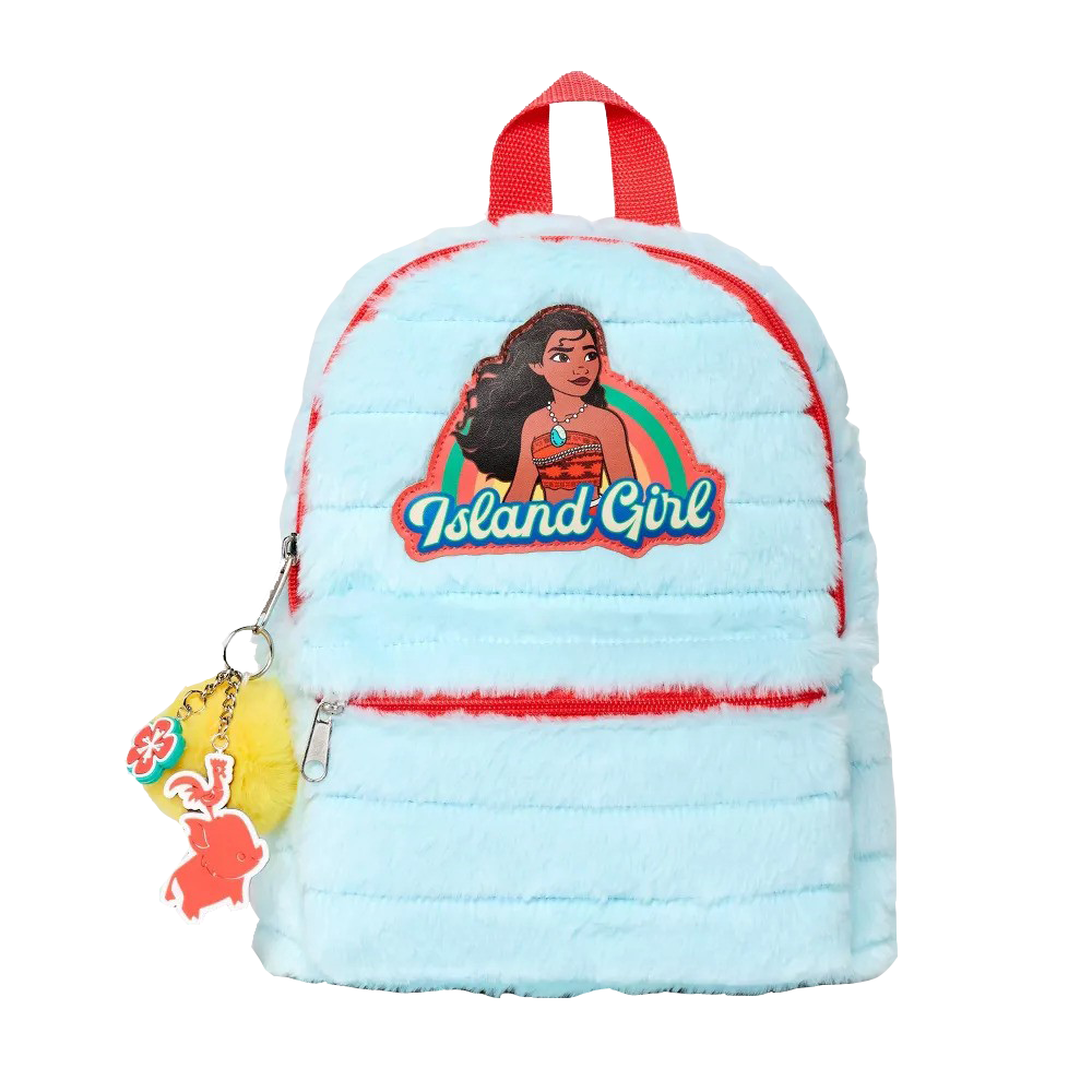 Esta mochila presenta un gráfico de Moana junto con el texto "Island Girl" para un aspecto favorito de los fanáticos.
