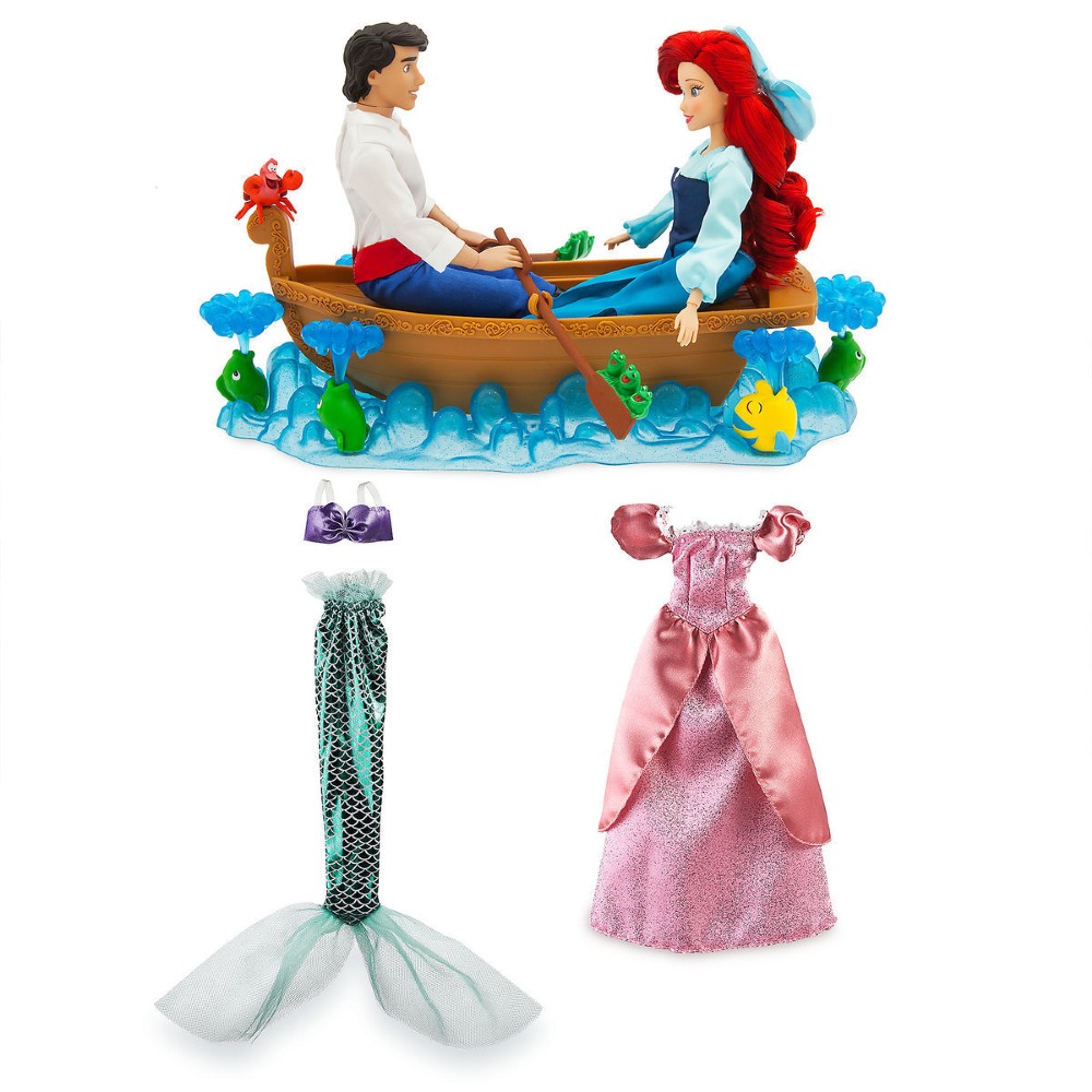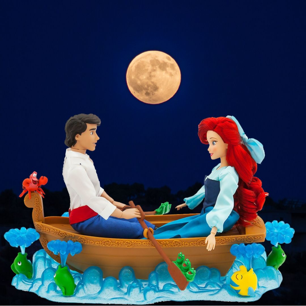 El juego incluye 10 piezas. Princesa Ariel y Eric poseables muy detallados. Dos trajes para Ariel adicionales: vestido rosa con un vestido de gala y un bandeau de color púrpura. Bote de remos con dos asientos para acomodar figuras. Dos remos con ranas adosadas. Base con aspecto de agua, completa con un lenguado y otros peces, también incluye figura de Sebastián que puede sentarse encima del bote. Aletas de Ariel color verde metalizado con detalles de tul.
