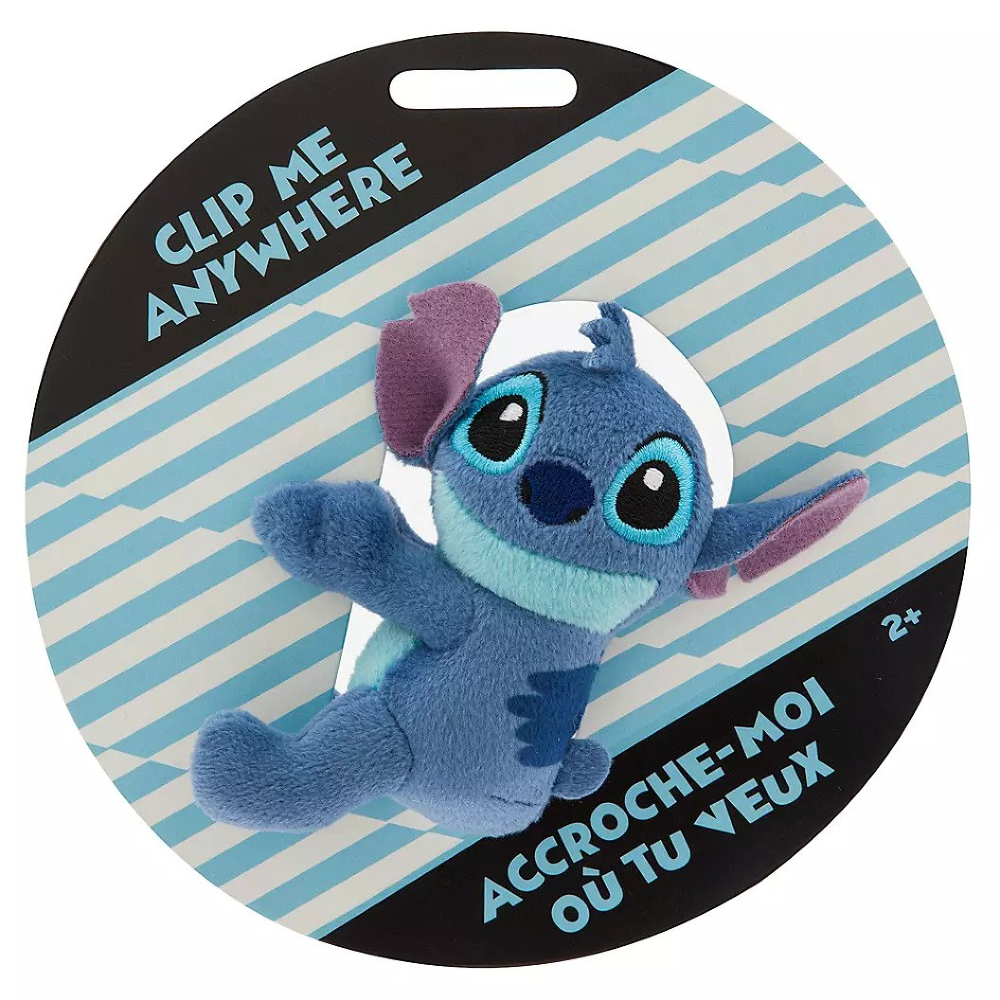 ¡Nuestro micro peluche Stitch está listo para ir a donde sea que vayas! Simplemente aprieta los hombros de este pequeño espléndido, para abrir sus brazos y agregarle ternura con clip a cualquier cosa.