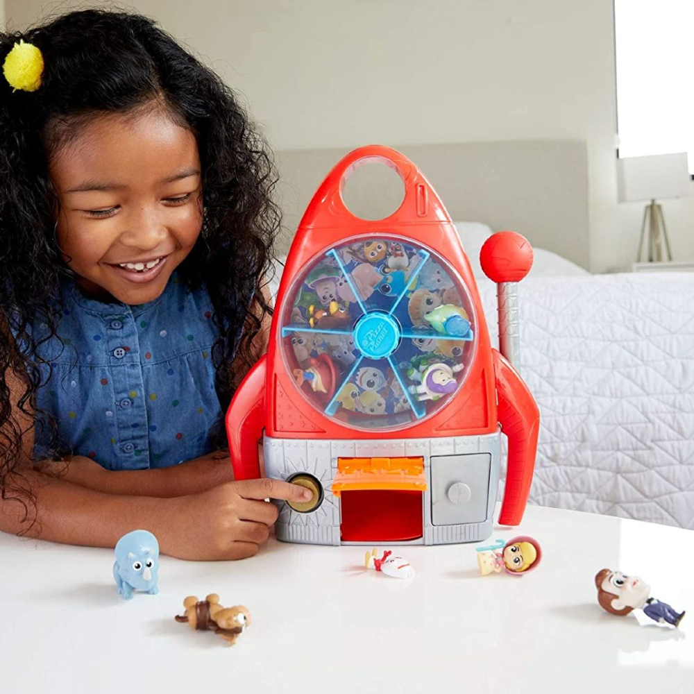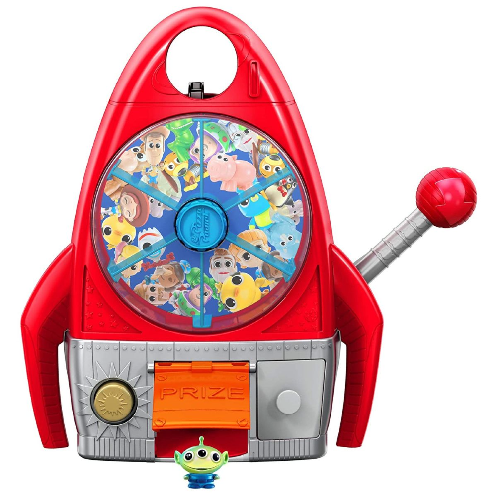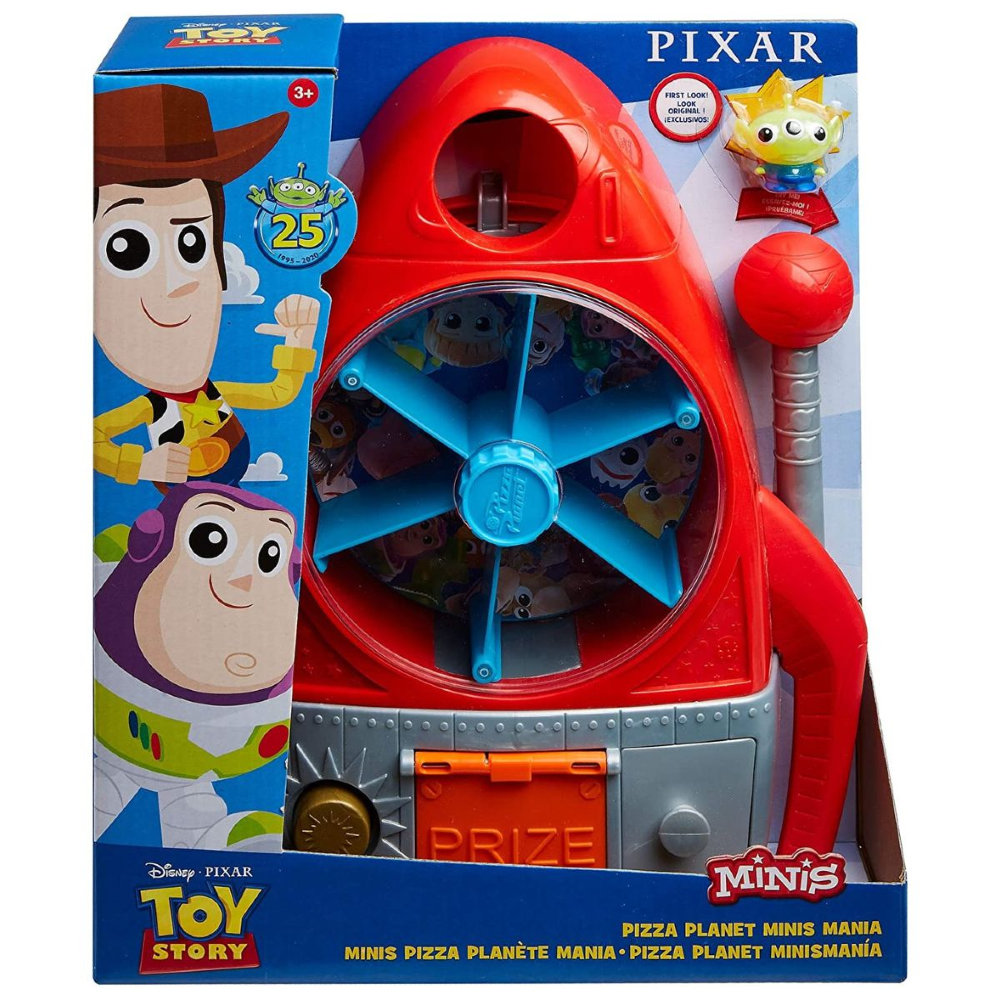 El playset 25 aniversario Cohete Toy Story celebra décadas de aventuras cinematográficas! Exhibí, guarda, lleva y colecciona más de 10 mini figuras. Con el juego de máquinas tragamonedas gana una figura sorpresa.