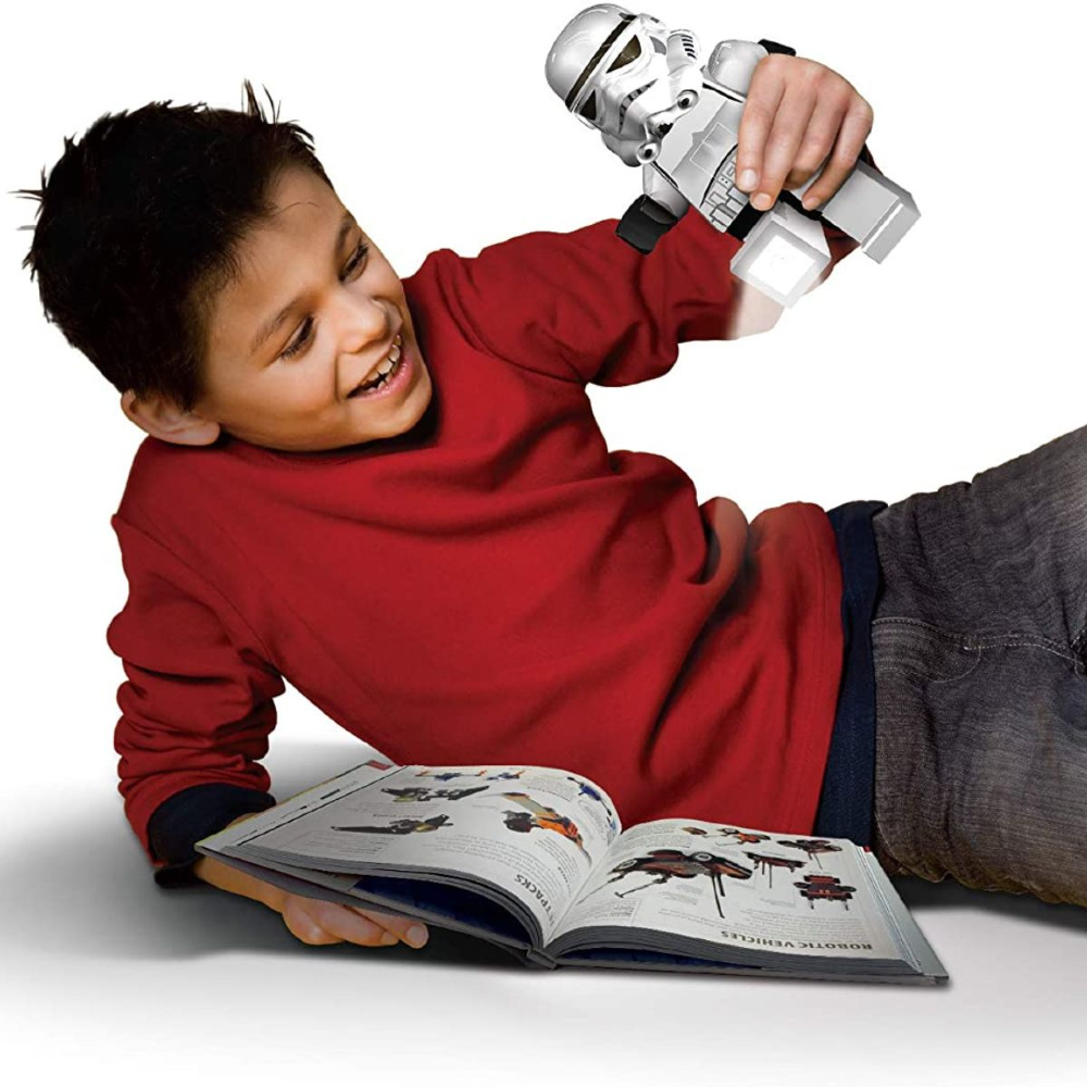 Stormtrooper esta listo para marchar con su luz de Led. El Imperio Contraataca con su poderosa presencia y sus brillantes luces LED. ¿Cómo lidiarán las Fuerzas Rebeldes con la luz? Algo imprescindible para cualquier fan de Star Wars. Presione el botón en su pecho para encender las luces LED en sus pies.