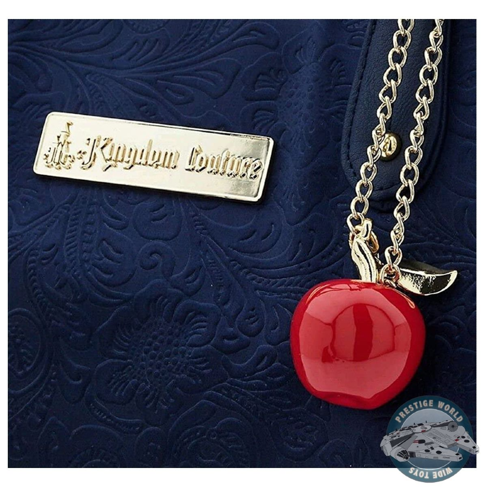 Disney Parks Kingdom Couture Snow White Apple Charm Tote Bag con diseño en relieve, cierre con solapa magnética, un bolsillo interior con cremallera, dos bolsillos interiores abiertos, incluido el bolsillo para el teléfono celular.