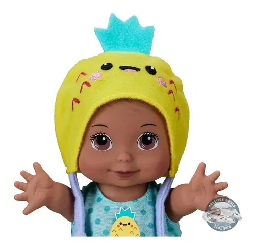 La muñeca tiene aroma a ananá. La muñequita está vestida con ropa suave y delicada, con un lindo gorro con temática de ananá