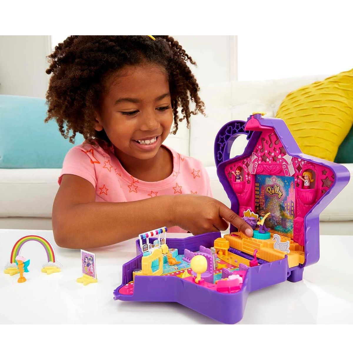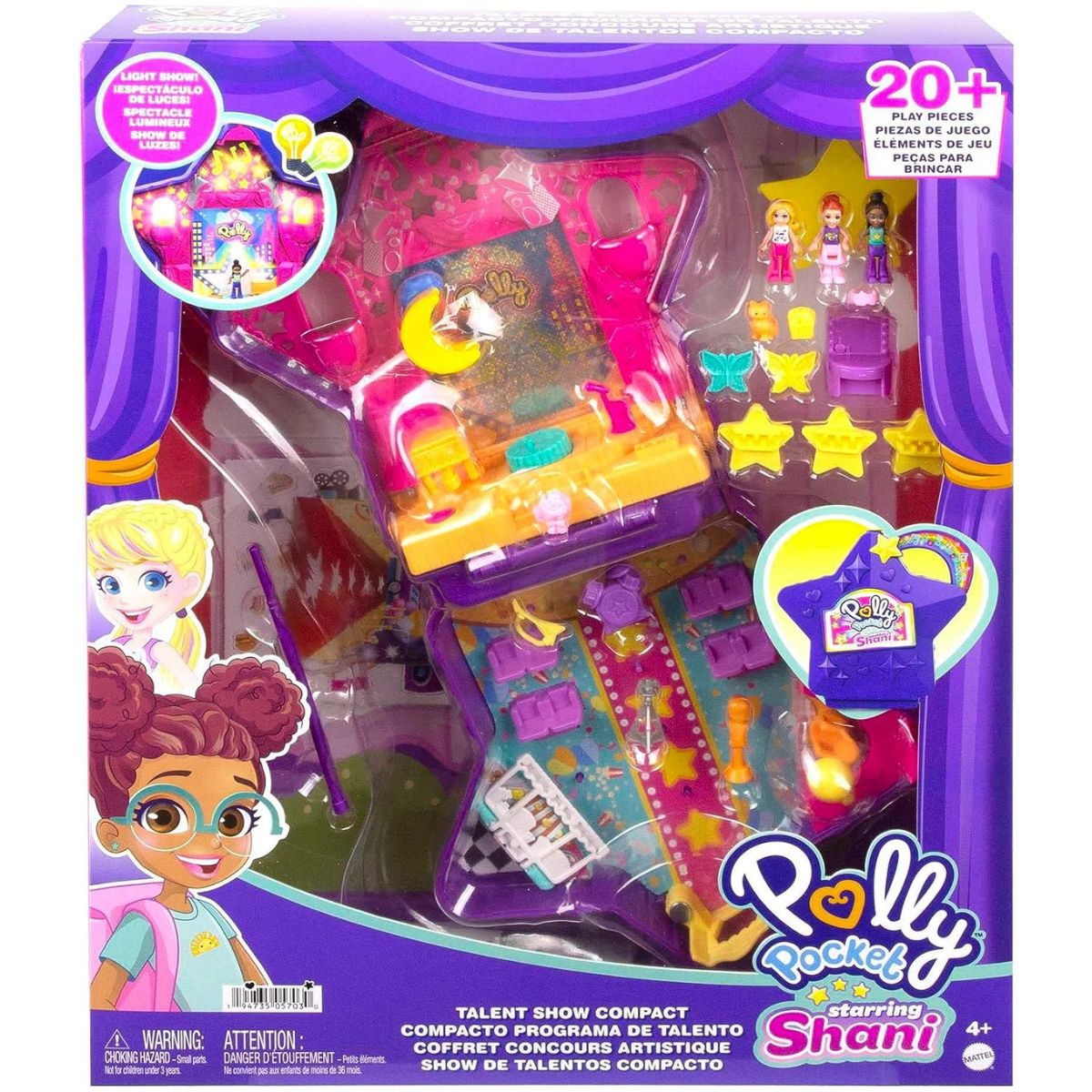 Prepárate para la diversión con el playset Polly Pocket Starring Shani Talent Show. Shani es una de las mejores amigas de la muñeca Polly junto con Lila.