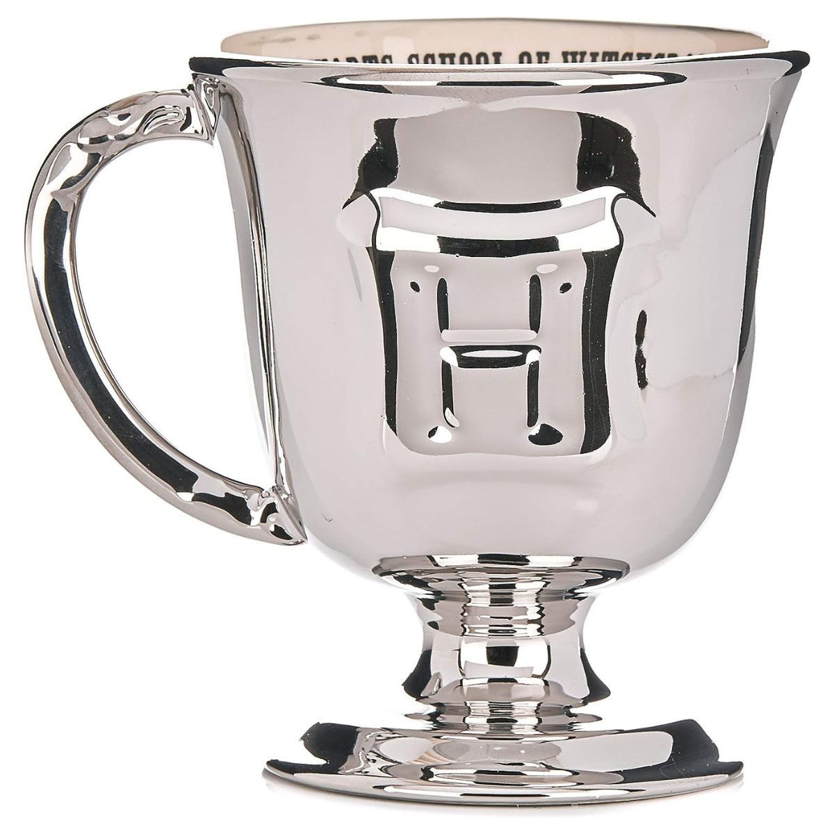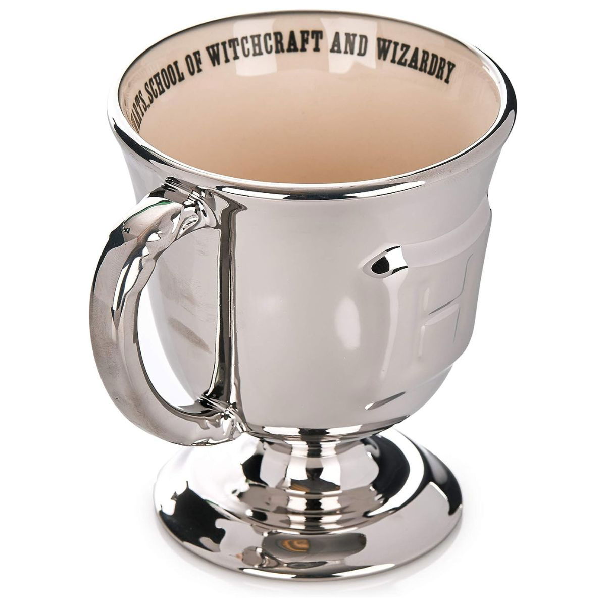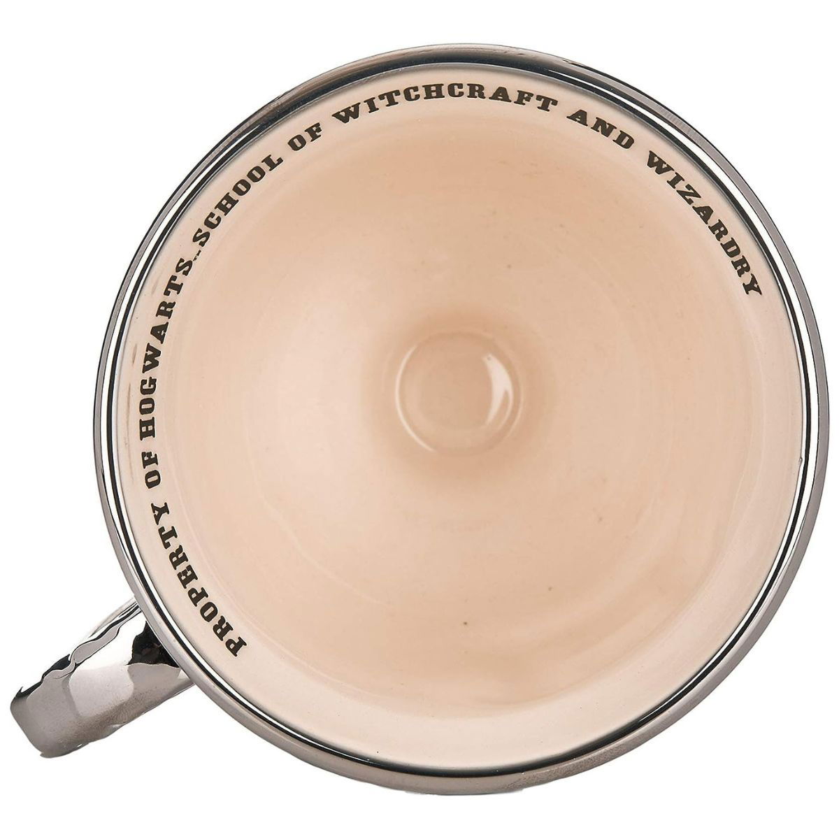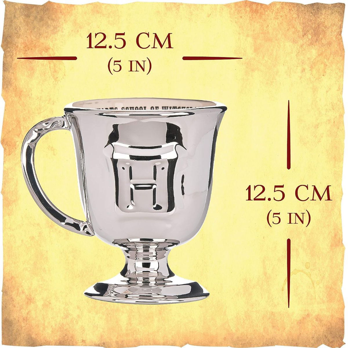TAZA COPA Brinda con la Taza Copa Hogwarts, una elegante taza plateada con la letra "H" en el costado y las palabras "Propiedad del Colegio Hogwarts de Magia y Hechicería"(EN INGLES) en el borde interior.