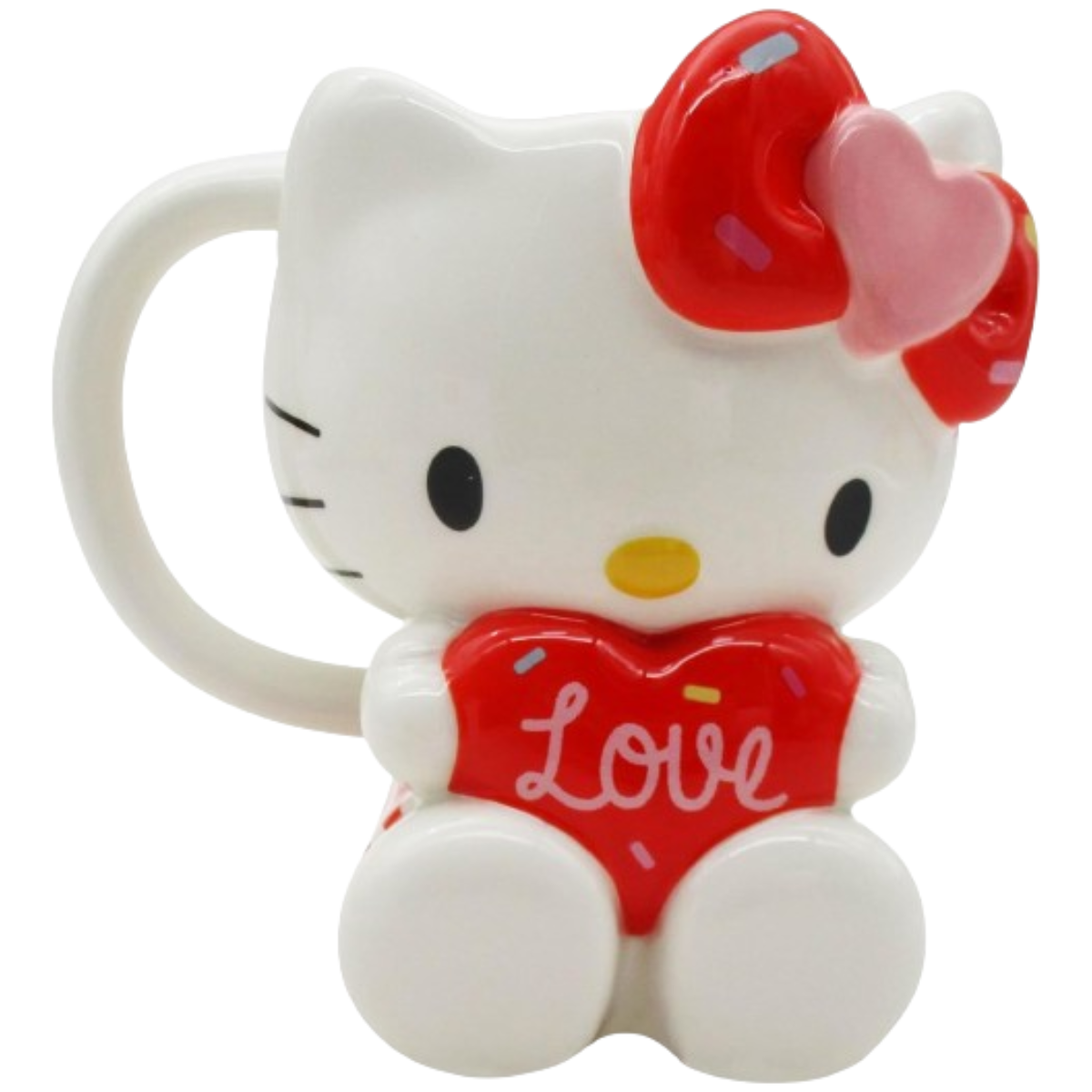 Disfruta de tu bebida favorita en esta taza esculpida en 3D de cerámica con disfraz de esqueleto de Hello Kitty.