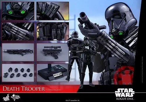 Rogue One: A Star Wars Story, que llegará en diciembre, llevará a los fanáticos a una nueva aventura épica donde un grupo de héroes improbables se unen en una misión para robarle los planes a la Estrella de la Muerte, el arma definitiva de destrucción del imperio durante el tiempo de conflicto. Sideshow y Hot Toys están encantados de presentar a uno de los nuevos soldados más impactantes de la película: ¡la figura coleccionable Death Trooper (Specialist) en escala! La figura coleccionable de alta precisión está especialmente diseñada en base a la imagen de un soldado de la Muerte en Rogue One: A Star Wars Story. La figura presenta una armadura de color negro finamente diseñada, casco con función de luz LED, un rifle blaster Death Trooper y una pistola muy detallada, y un soporte para figuras especialmente diseñado. Los fanáticos de Star Wars no deben perder la oportunidad de hacer que este increíble soldado de la muerte (especialista) comience su colección Rogue