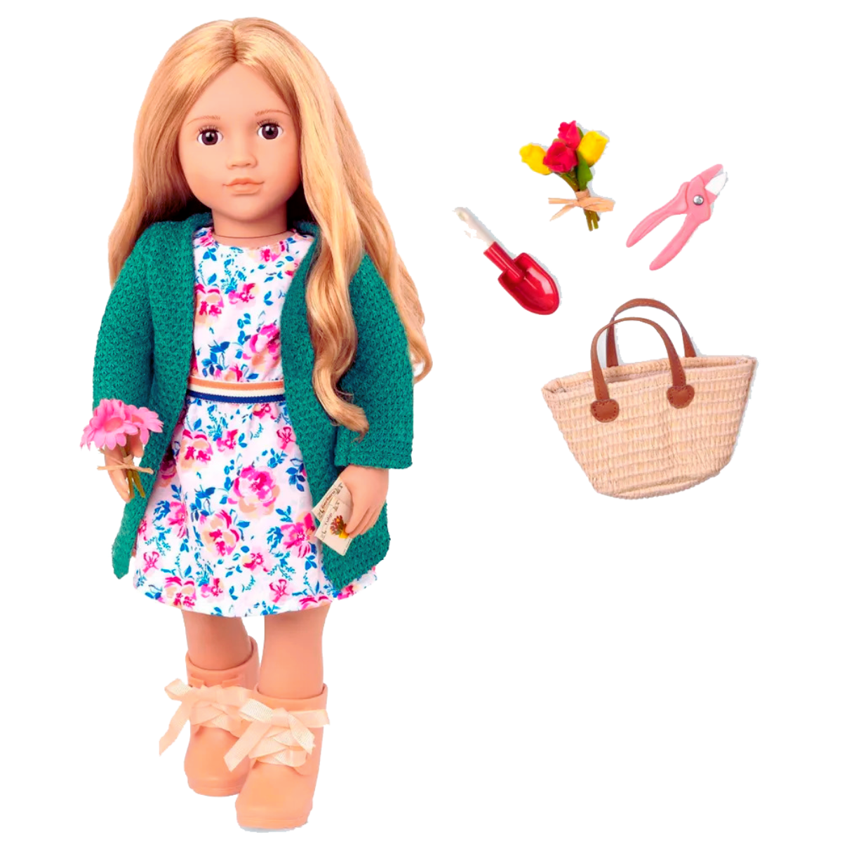 Pasa tiempo en el jardín más dulce con Sage! Esta muñeca Our Generation de 18 pulgadas (46 cm) tiene ojos de color marrón oscuro que se abren y cierran, y su largo cabello rubio es divertido de cepillar y peinar.