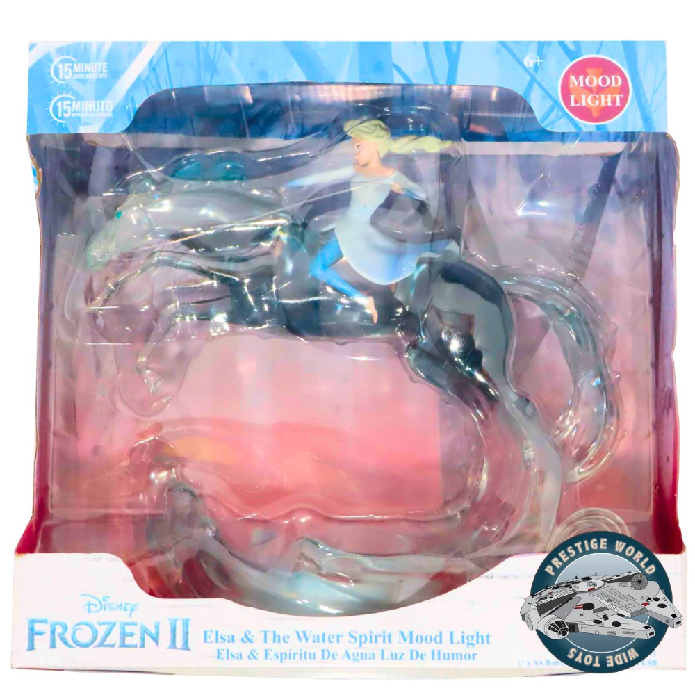 Recrea en esta lámpara con luz de led, la escena de la película Frozen 2 de Disney, con Elsa montando al Espíritu del Agua en esta fina y detallada escultura!