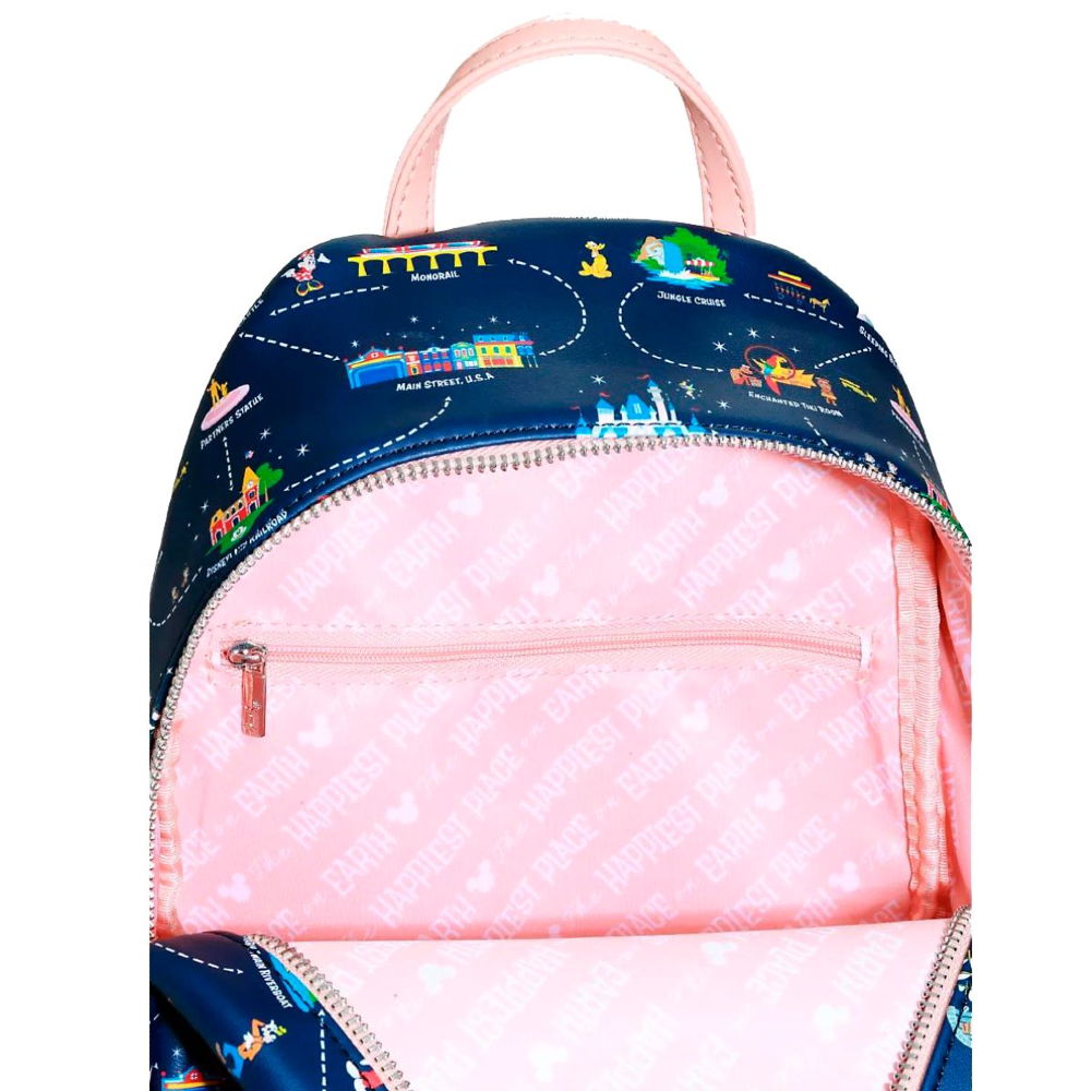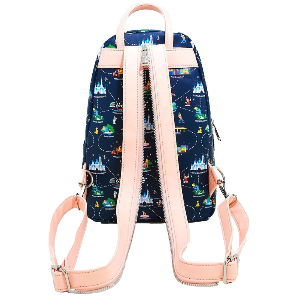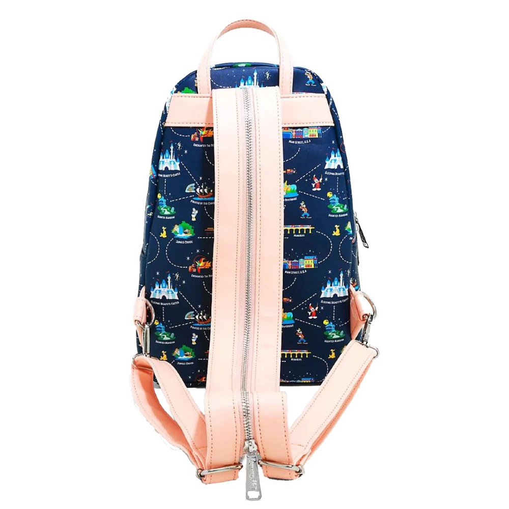 Celebra 65 años de magia! Con esta deslumbrante mini mochila 2 en 1. Con un diseño de mapa de Disneyland, este diseño de piel sintética de Loungefly es perfecto para llevar todo lo que necesitas para la vida diaria! Con el compartimento principal con cierre, bolsillo frontal con cierre y forro interior rosa, con un bolsillo con cierre y el diseño "Happiest Place on Earth". Además, la correa cruzada se puede convertir, ¡simplemente en 2 correas para convertirla en una mochila!