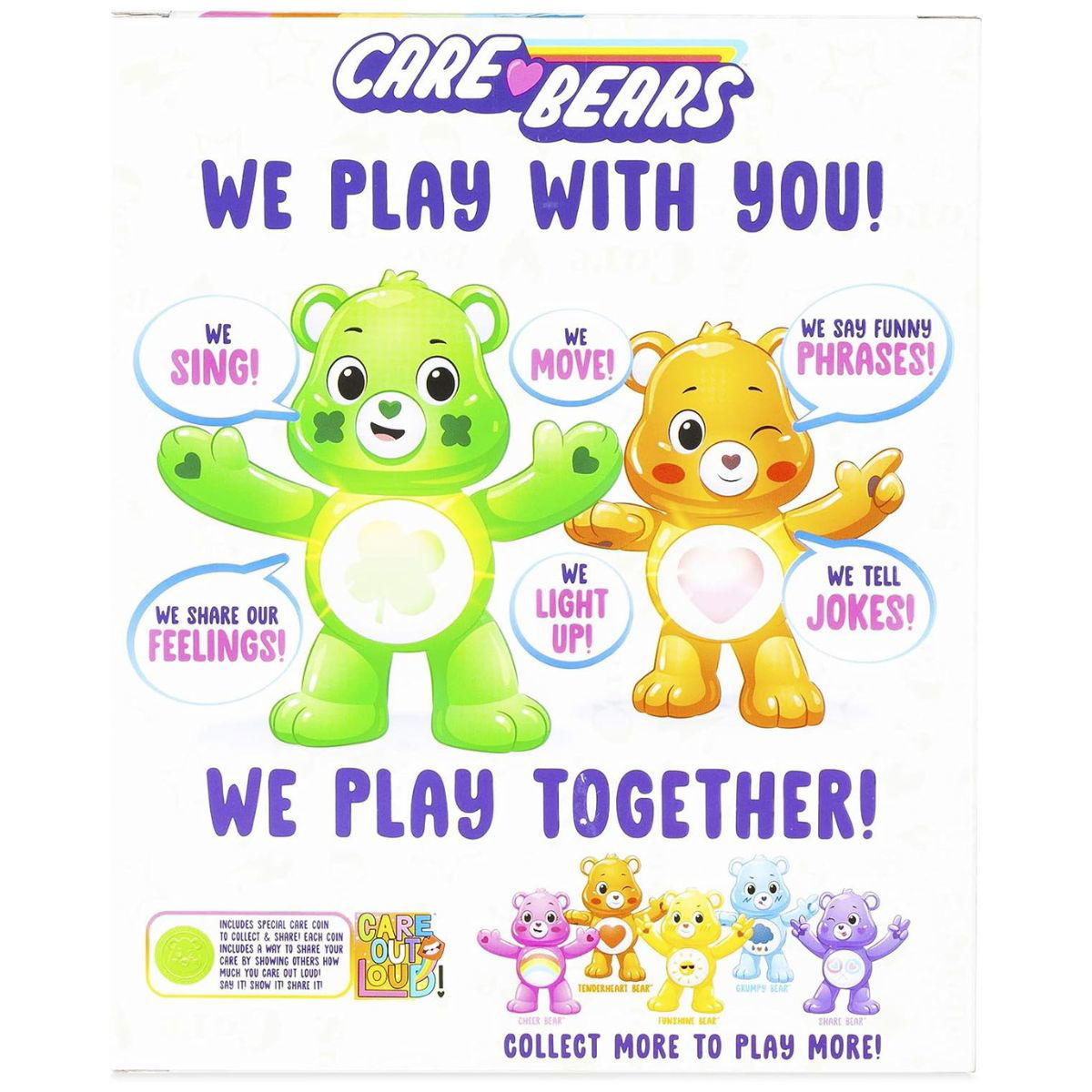 Nuevos Ositos cariñosos Figuras interactivas. Tu toque desbloquea 50 reacciones y sorpresas! Juega con tu amigo favorito de Care Bears como nunca antes con los nuevos Care Bears.