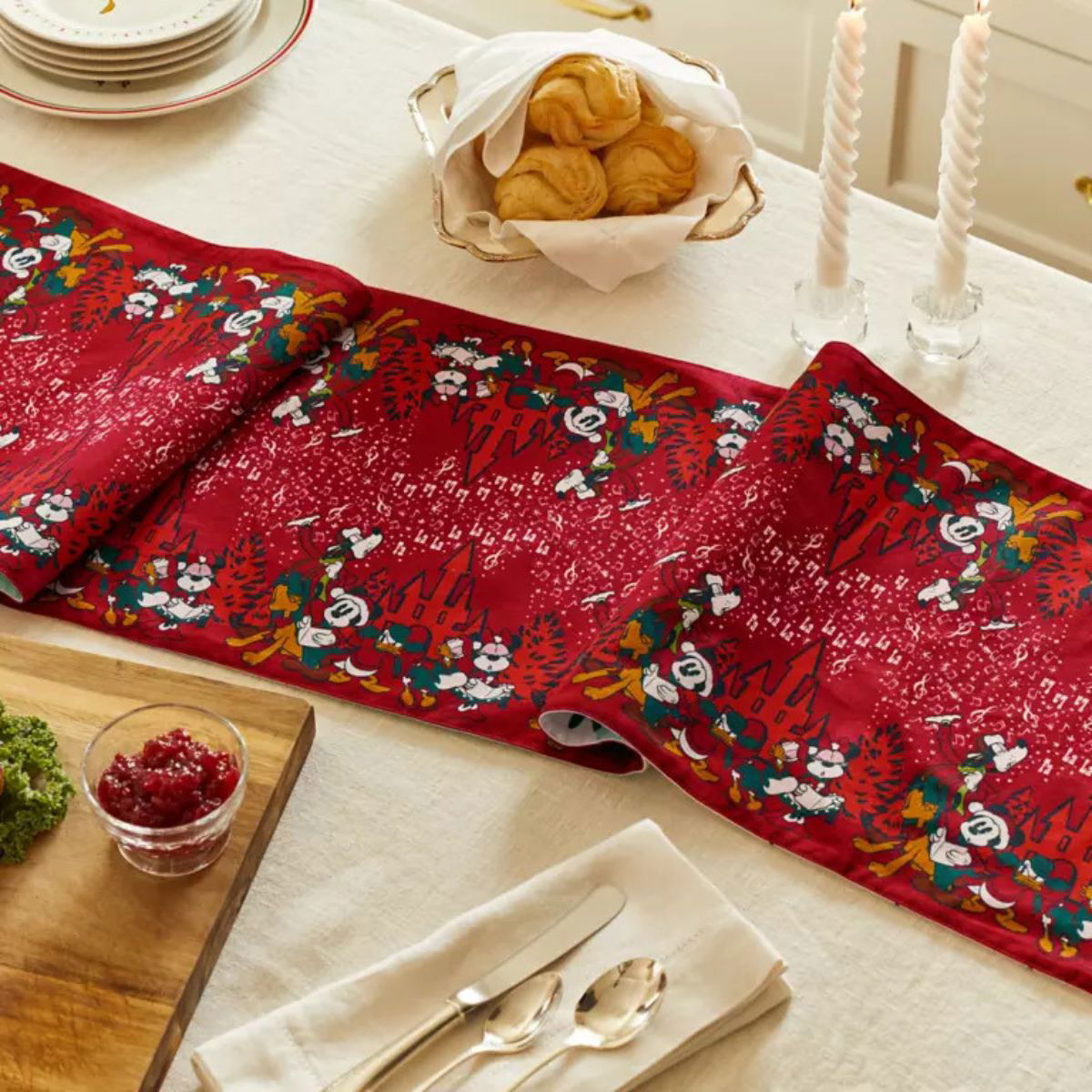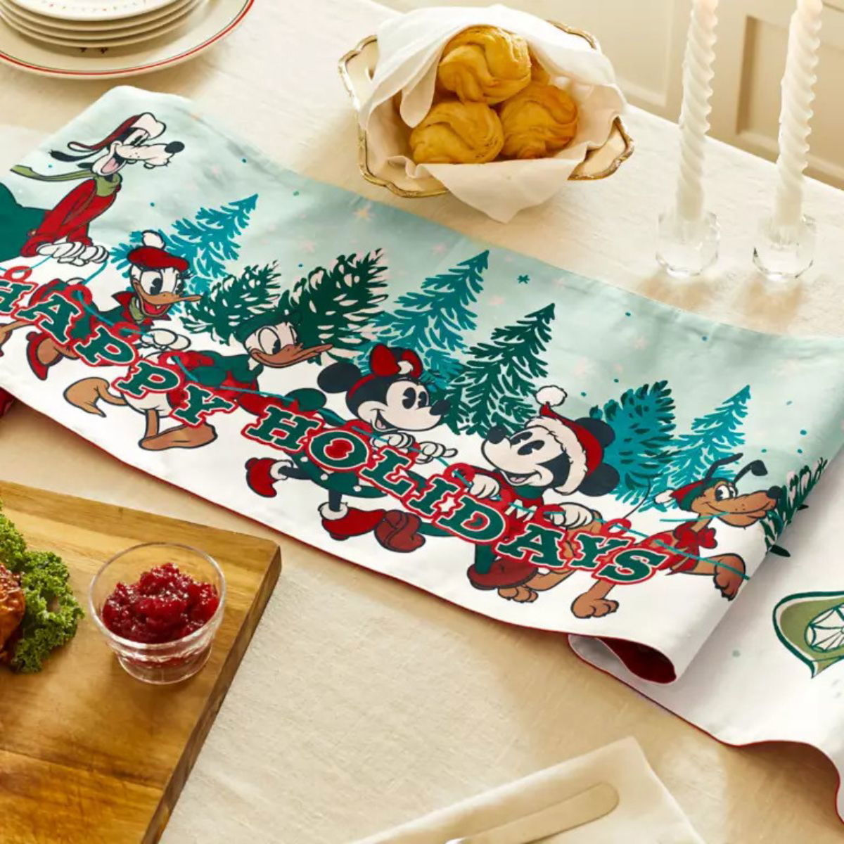 La configuración de tu mesa para la hora del té seguramente se verá maravillosa con este camino de mesa navideño vintage de Mickey y Minnie!