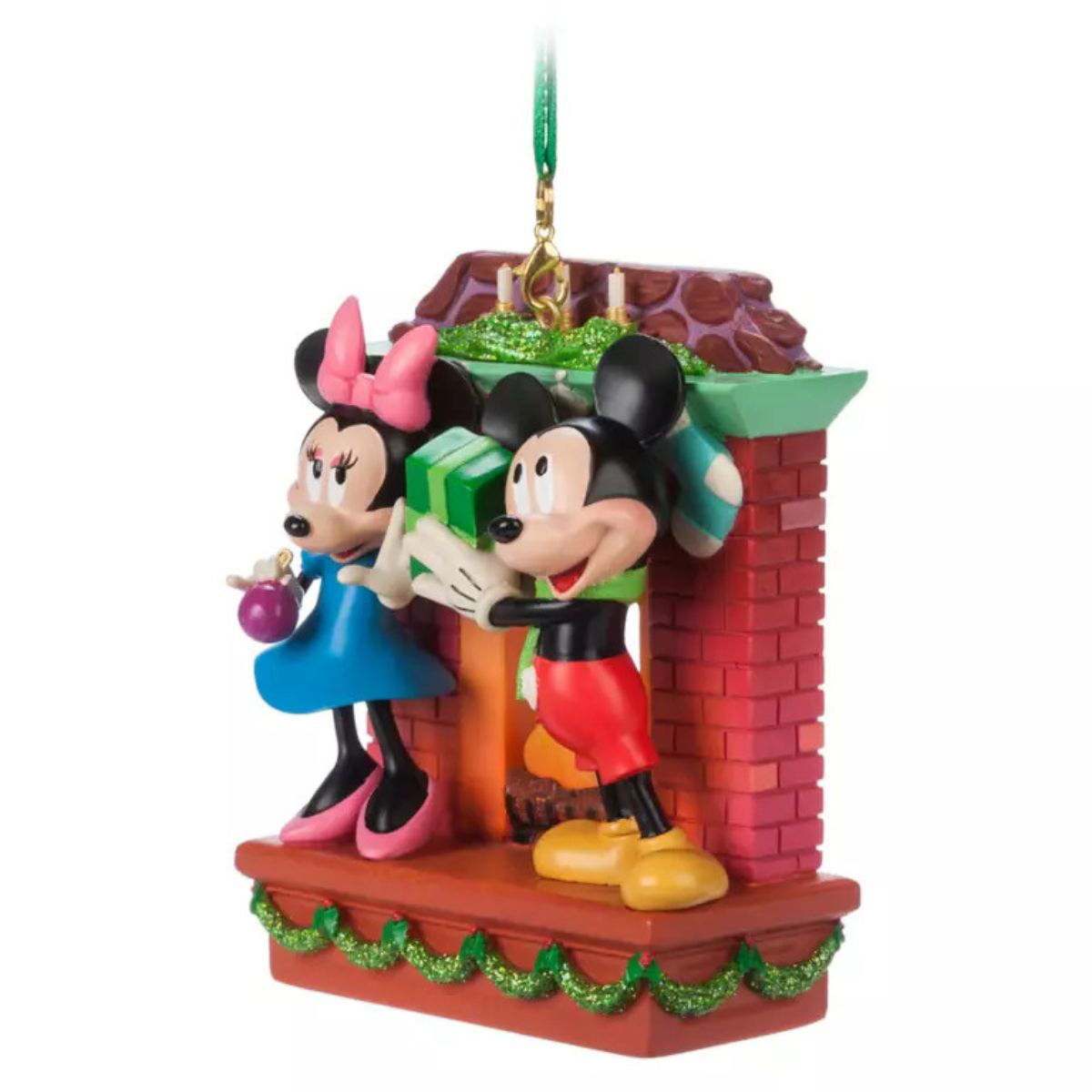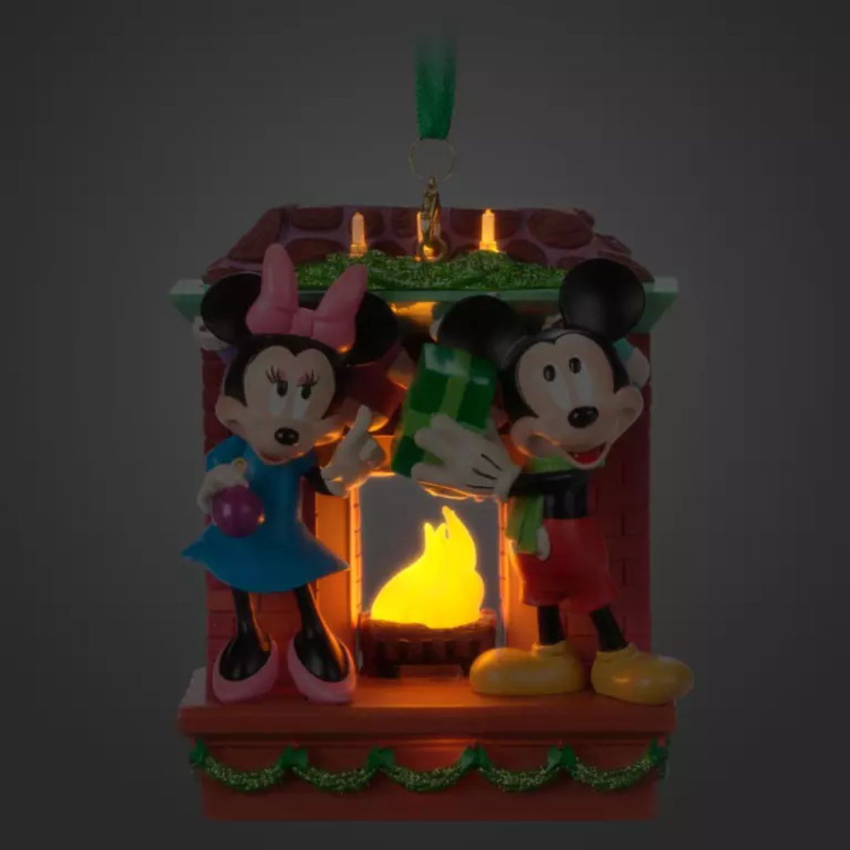 Mickey y Minnie Mouse alegran las fiestas ante una "chimenea" iluminada.