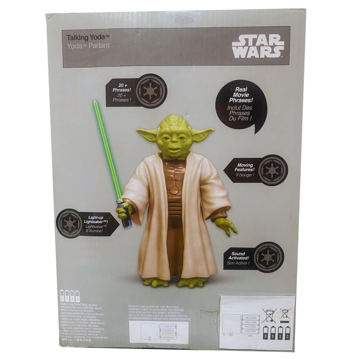 La Fuerza es ciertamente fuerte con esta figura de acción con frases de Yoda! El Maestro Jedi responde a los comandos de voz con frases icónicas y presenta movimientos de cabeza, ojos y boca increíblemente realistas.