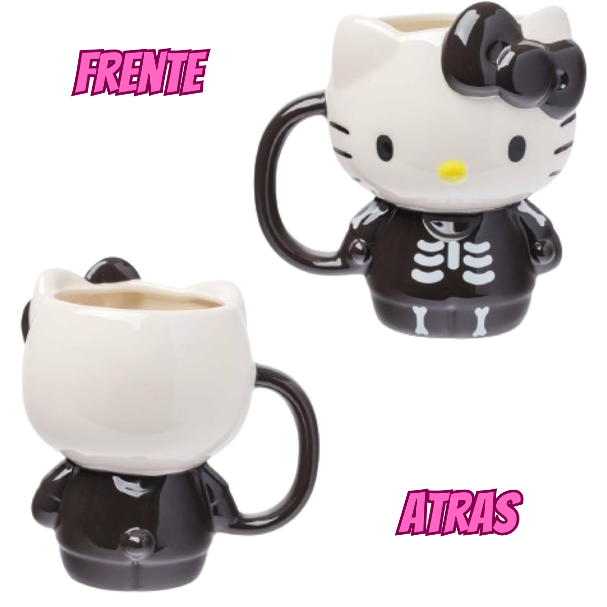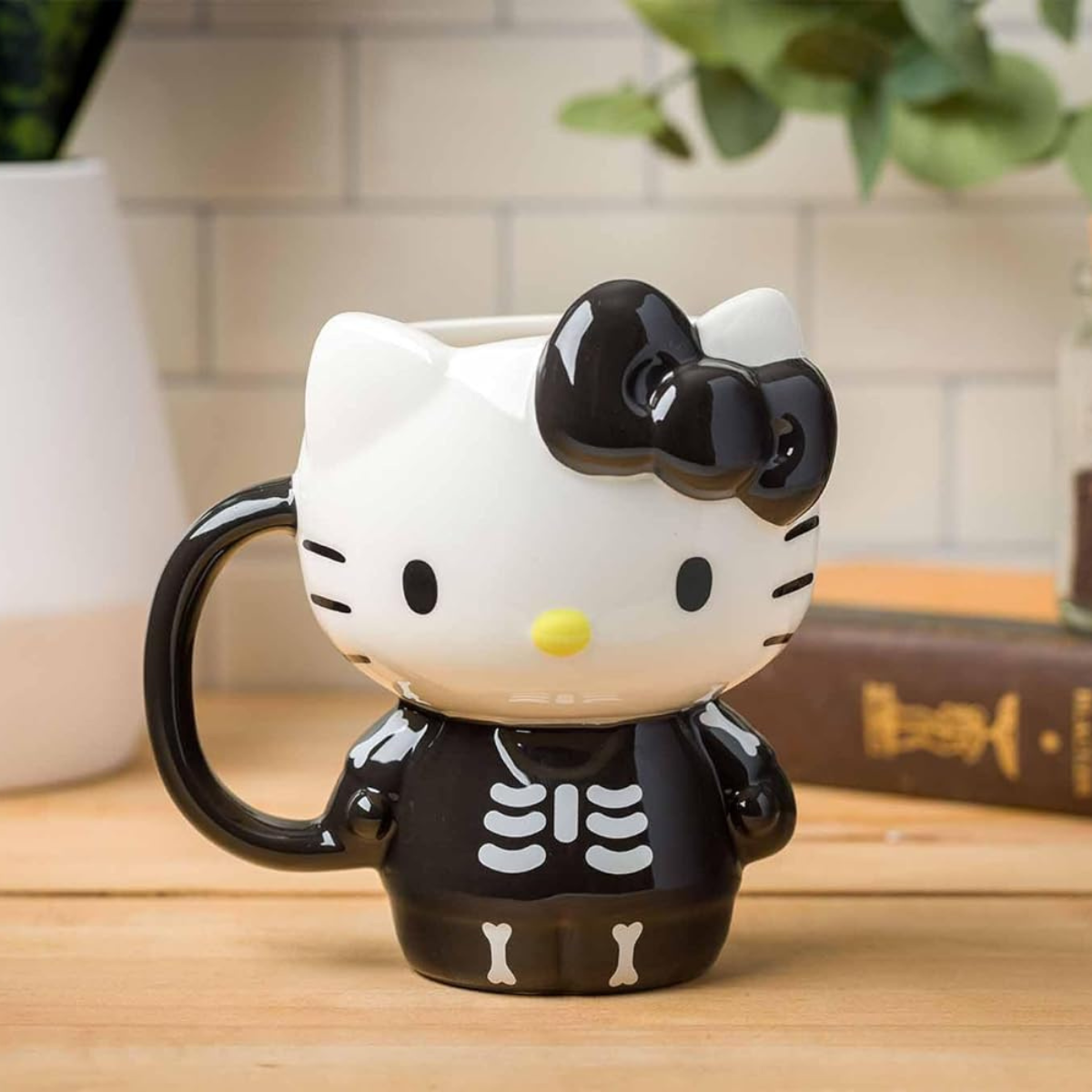 Disfruta de tu bebida favorita en esta taza esculpida en 3D de cerámica con disfraz de esqueleto de Hello Kitty. USOS MÚLTIPLES, Taza coleccionable que también se puede usar como pisapapeles, portalápices para su escritorio o como lugar para mantener ordenado tu escritorio.