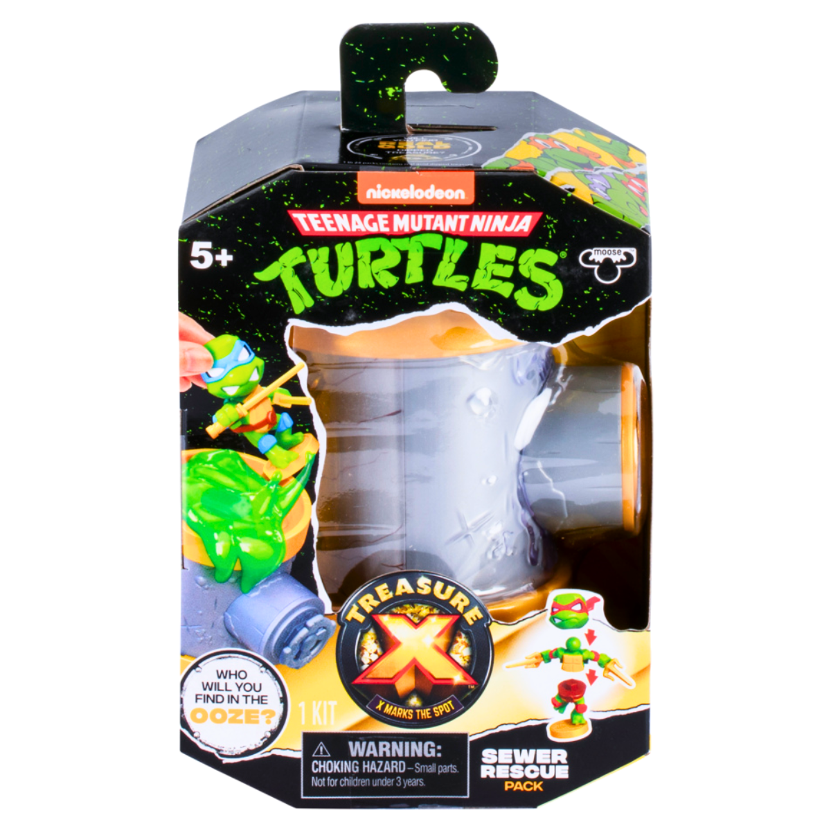 ¡Sal a cazar a las adorables y divertidas tortugas favoritas de todos, con el paquete de rescate de alcantarillado Treasure X Teenage Mutant Ninja Turtles! Rescata a las Tortugas Ninja del mutágeno que emana dentro de las tuberías de alcantarillado. Cada tubería contiene un personaje sorepresa con accesorios, entre ellos: Leonardo, Miguel Ángel, Donatello, Raphael, Shredder, Casey Jones e incluso un Leonardo de edición limitada. Todos sabemos cuánto aman la pizza las Tortugas, es por eso que cada personaje de Treasure X Teenage Mutant Ninja Turtle viene con un tesoro de rebanada de pizza que los niños pueden encontrar cuando abren la válvula de salida en la tubería de alcantarillado con la llave de la rueda de la válvula.